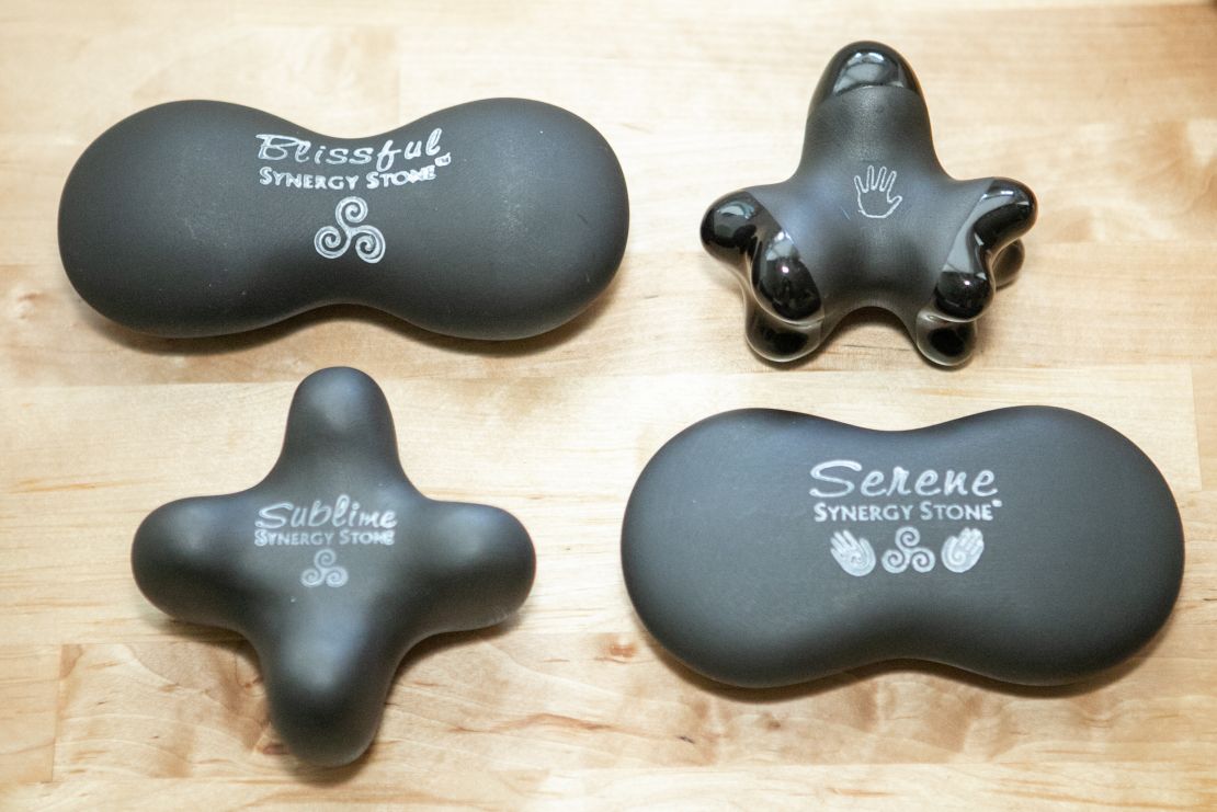 I use specially made stones called Synergy Stones. They come in different shapes and sizes that are unique to work in spaces such as the neck, spine and scapular region. When heated, they bring just the right amount of heat to help loosen and relax your tissues and muscles. The overall experience is very relaxing, nurturing, and rejuvenating.
